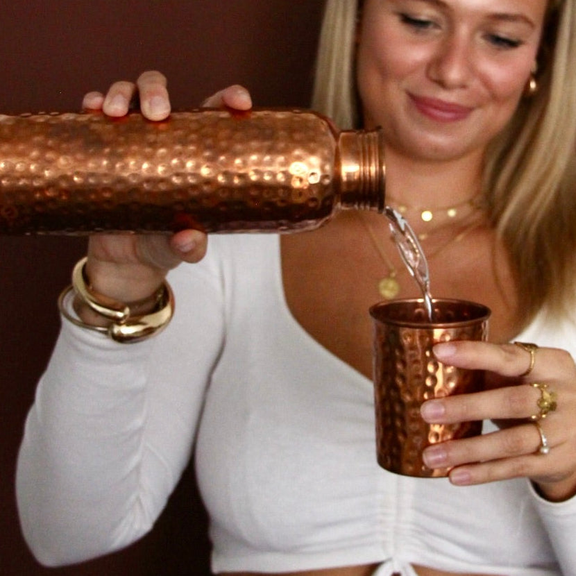 Dans la médecine Ayurvédique, l'utilisation de récipients en cuivre est fortement répandue car ce métal a la particularité de purifier naturellement l'eau et lui transmettre des minéraux essentiels pour la santé.
