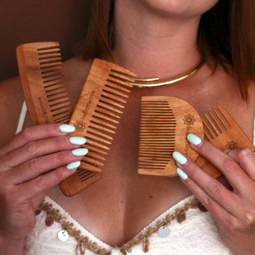 Contrairement aux peignes en plastique, qui cassent les cheveux et génèrent de l’électricité statique, le bois de Neem renforce, démêle et nourrit les cheveux naturellement.